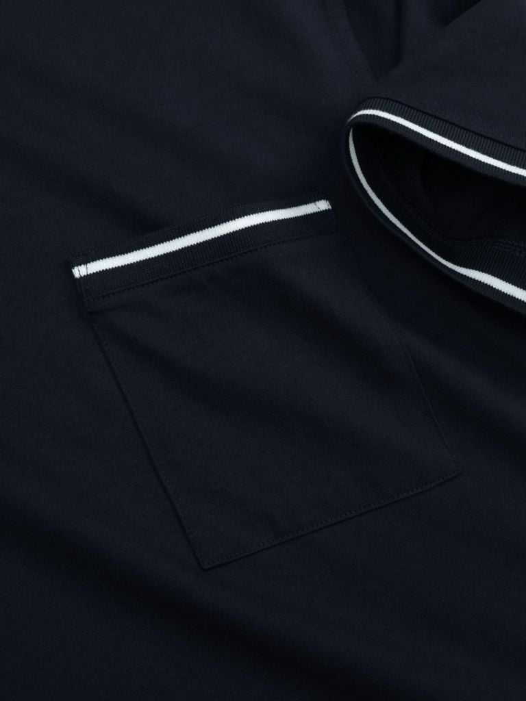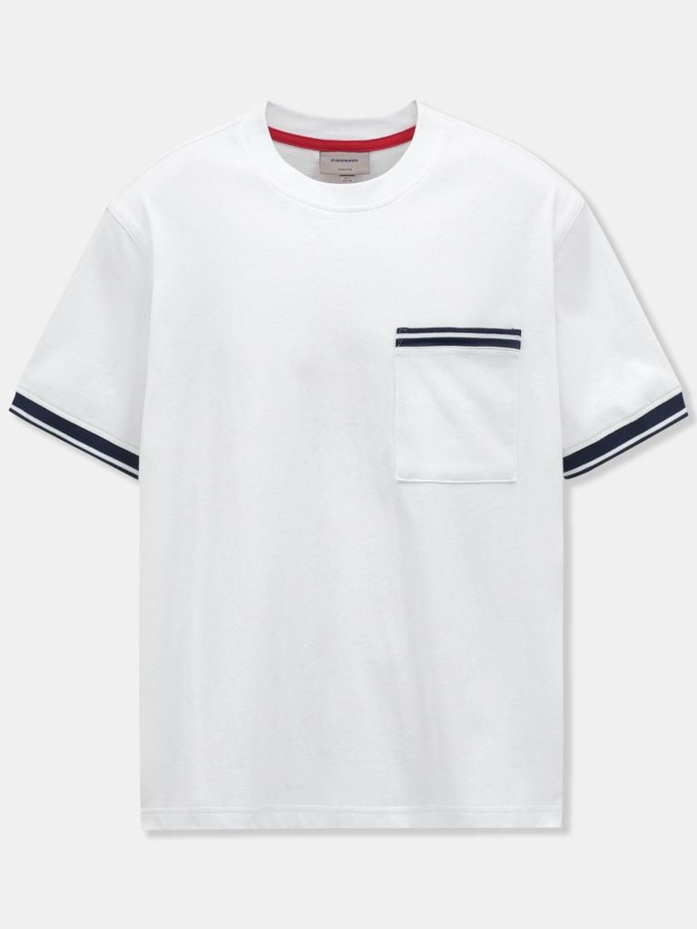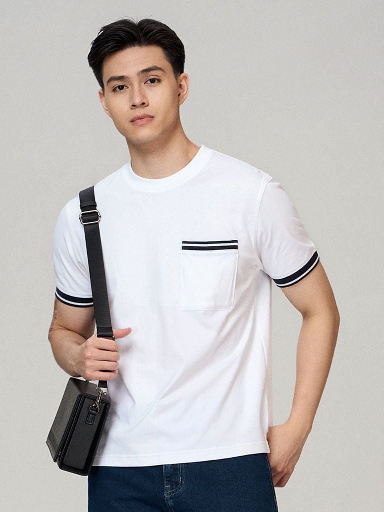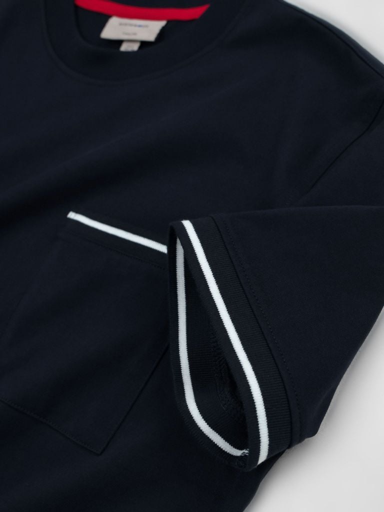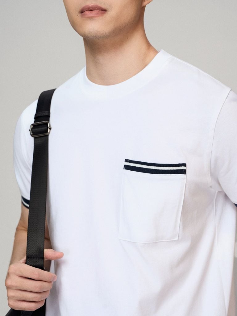 ► THIẾT KẾ TÚI POCKET – CHỈNH CHU & ĐỘC ĐÁOĐiểm nhấn túi ngực phối bo dệt tinh tế, mang đến sự khác biệt cho một chiếc áo basic. Chi tiết nẹp viền, bo tay sọc ngang cùng đường may kỹ thuật 2 kim tạo nên tổng thể chắc chắn và hiện đại.