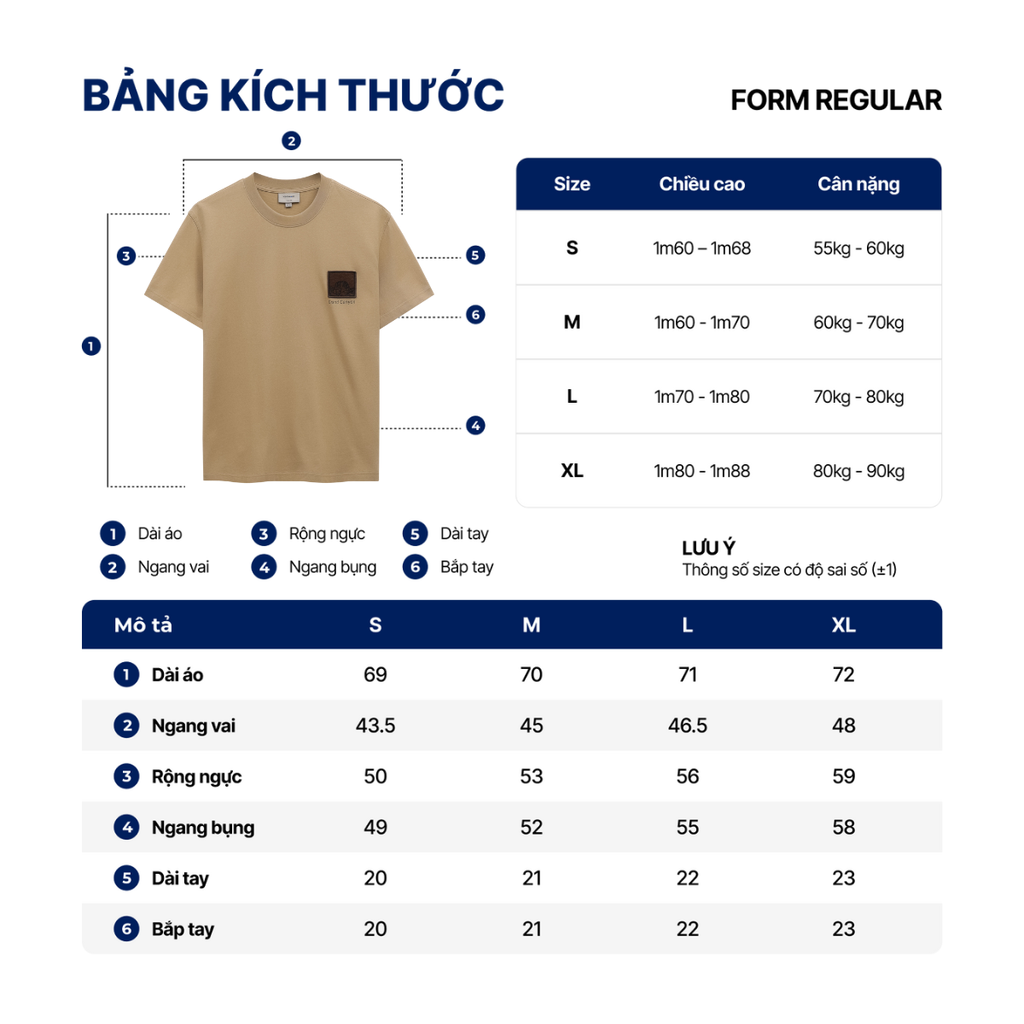 ► FORM REGULAR – GỌN GÀNG & DỄ PHỐIThiết kế cổ tròn, bo cổ đồng màu, đường may tinh gọn. Form regular vừa vặn, dễ hợp nhiều vóc dáng, giữ phong thái thoải mái mà vẫn chỉnh chu.