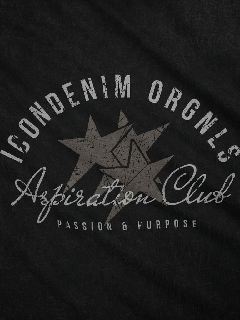 Bo cổ tròn dùng rib gân tiệp màu, giúp tổng thể nhìn liền mạch. Thân trước và thân sau đều có chi tiết in thấm vải, tạo điểm nhấn rõ. Thiết kế giữ được tinh thần tối giản hiện đại.