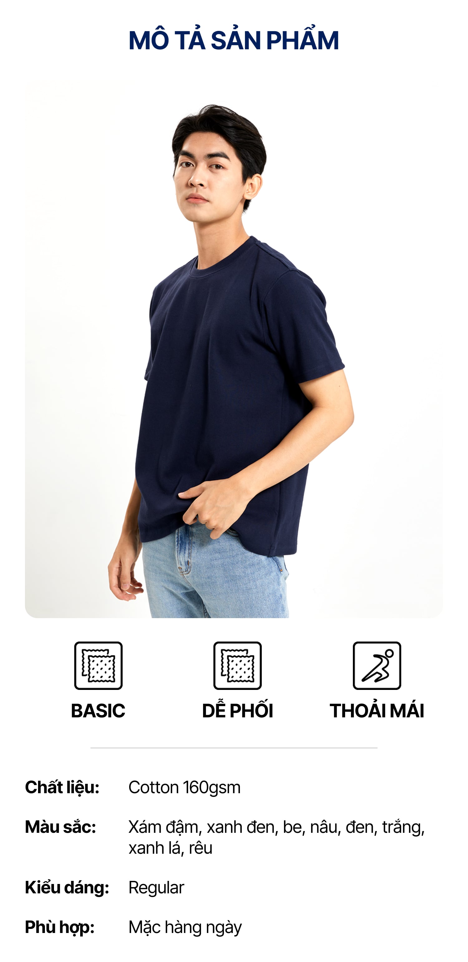 Áo Thun Nam Trơn ICONDENIM Form Regular