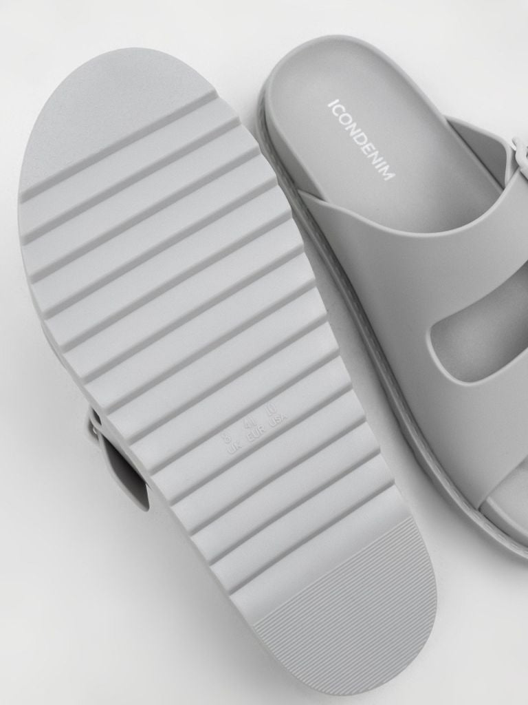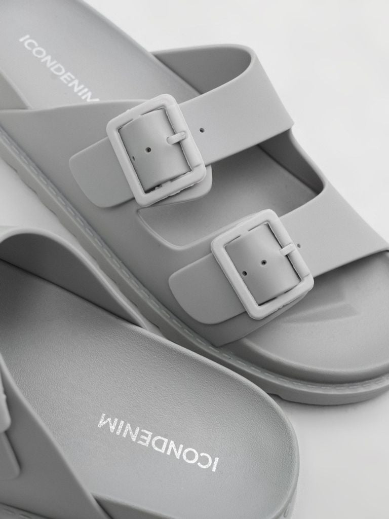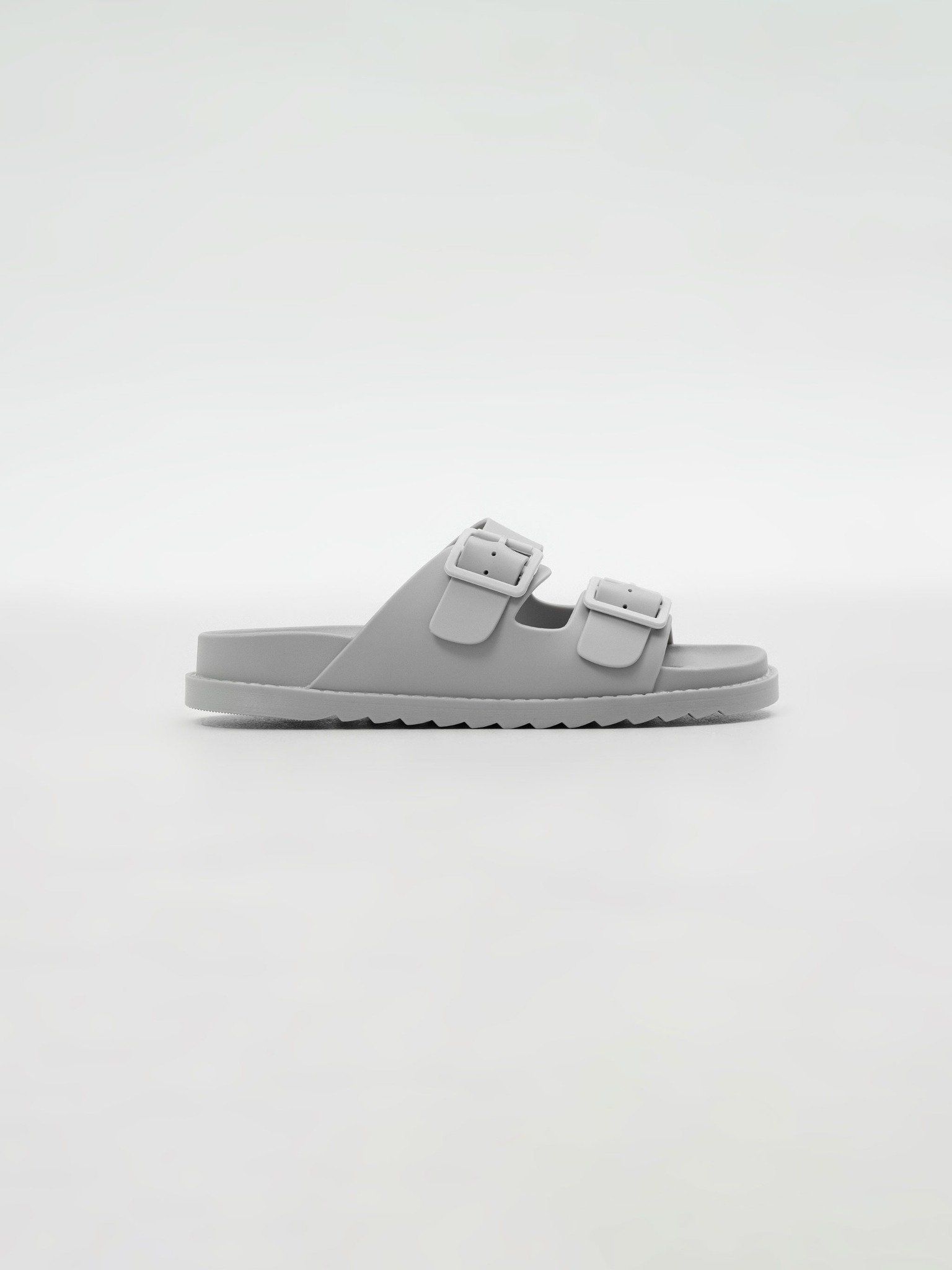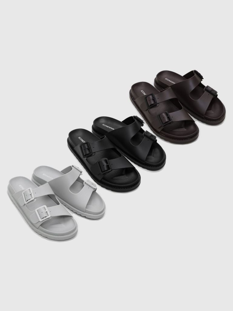 ► THIẾT KẾ DOUBLE BUCKLE – TIỆN DỤNG & LINH HOẠTQuai chéo đôi có khóa nhựa bản nhỏ giúp tăng độ bám và cố định chắc chân khi di chuyển. Phần mũi dép bo nhẹ tạo cân bằng dáng bàn chân, trong khi mặt lót in vân nổi kết hợp logo dập chìm mang lại cảm giác êm ái và độ bám tốt.