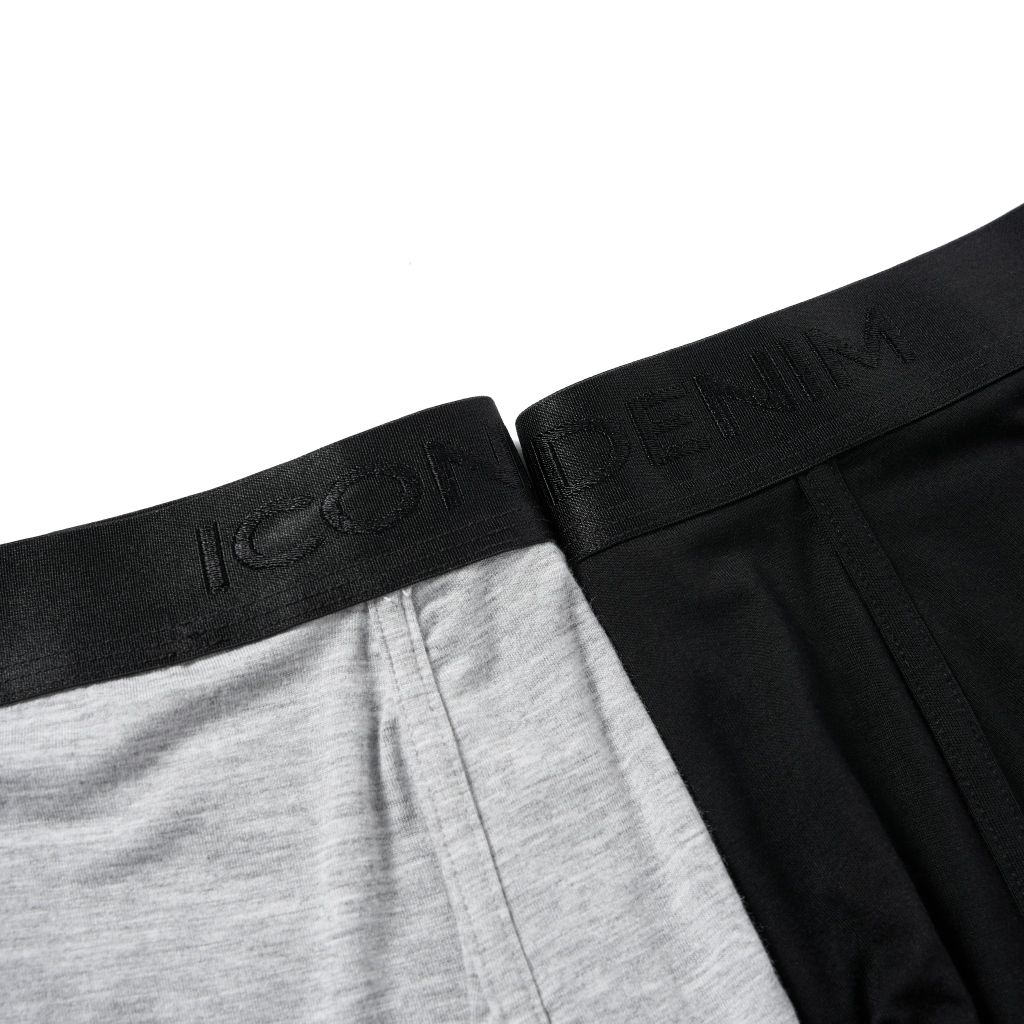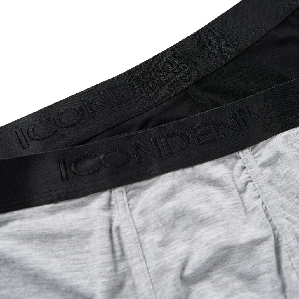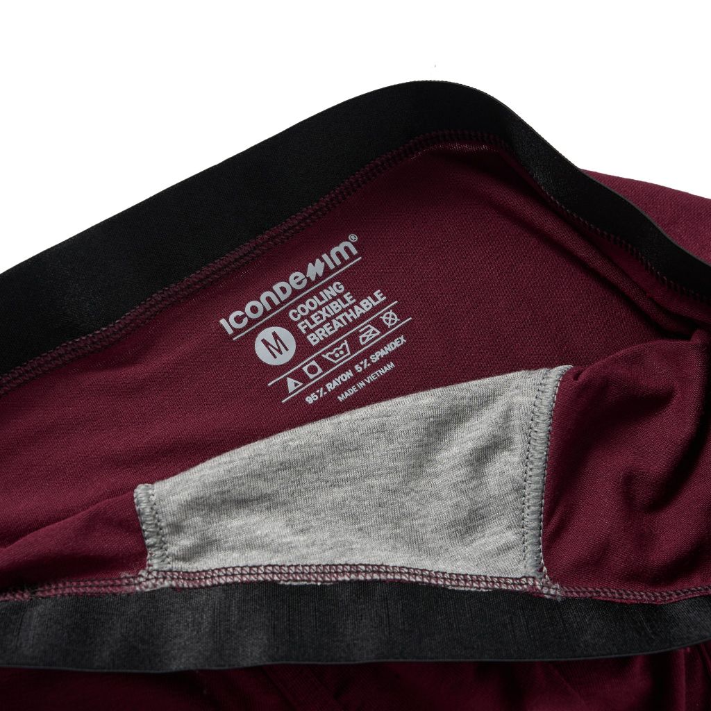 Thiết kế lưng thun dệt logo to bản 3 cm tạo điểm nhấn giúp thiết kế không quá đơn điệu. Quần boxer với ba gam màu thời thượng: xám melange, đỏ đô và đen, mang đến sự lựa chọn đa dạng.