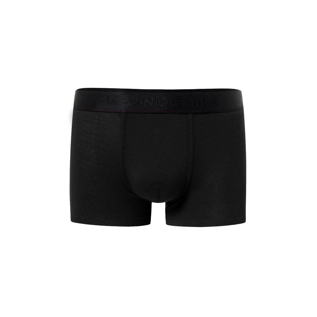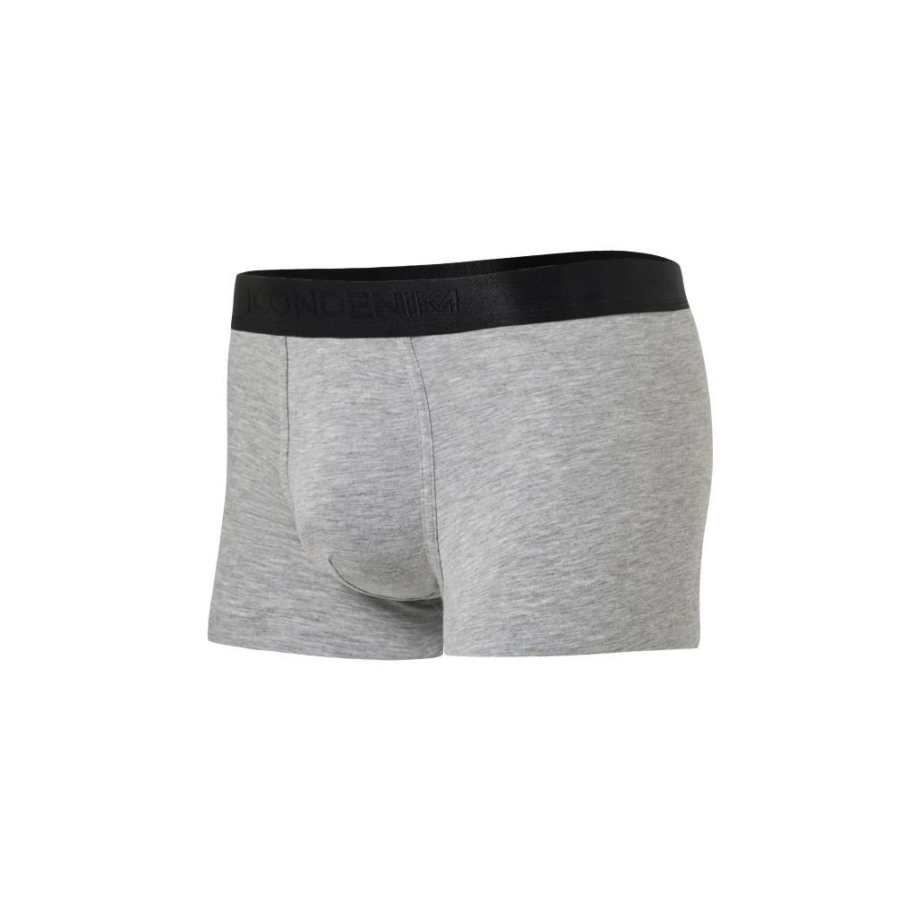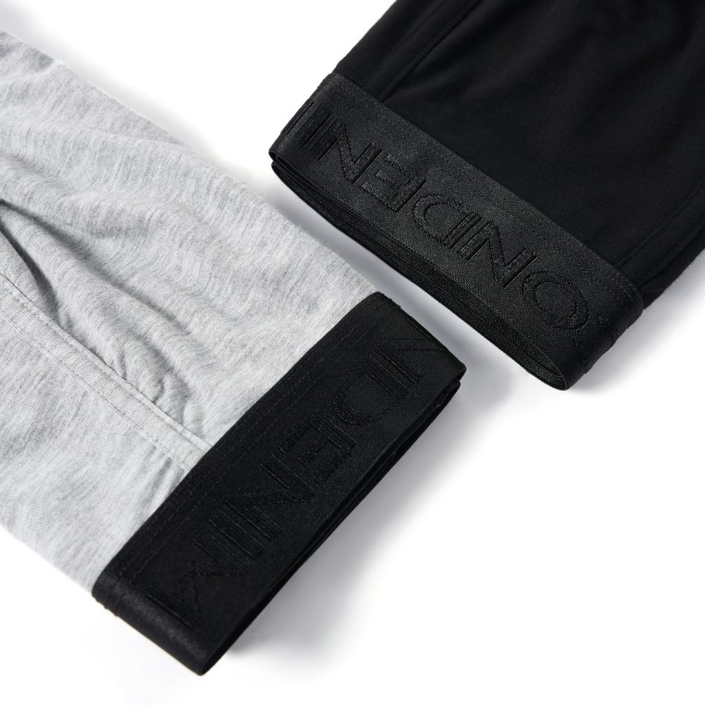 Thiết kế lưng thun dệt logo to bản 3 cm tạo điểm nhấn giúp thiết kế không quá đơn điệu. Quần boxer với ba gam màu thời thượng: xám melange, đỏ đô và đen, mang đến sự lựa chọn đa dạng.