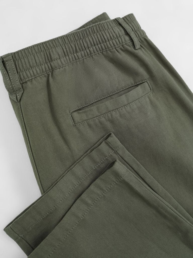 Lấy cảm hứng từ dòng quần linen châu Âu, thiết kế hướng đến vẻ tinh gọn và hiện đại. Bản lưng 4cm được may kỹ, có passan chữ U và dây thun giãn nhẹ ở thân sau giúp vừa vặn với nhiều dáng người. Hai túi cơi sau không nút được may giấu chỉ tạo nên tổng thể chỉn chu và cân đối.