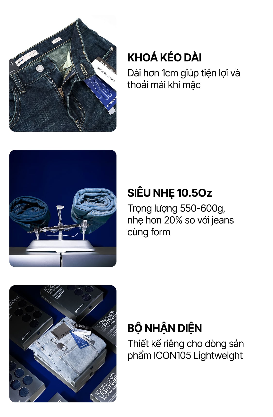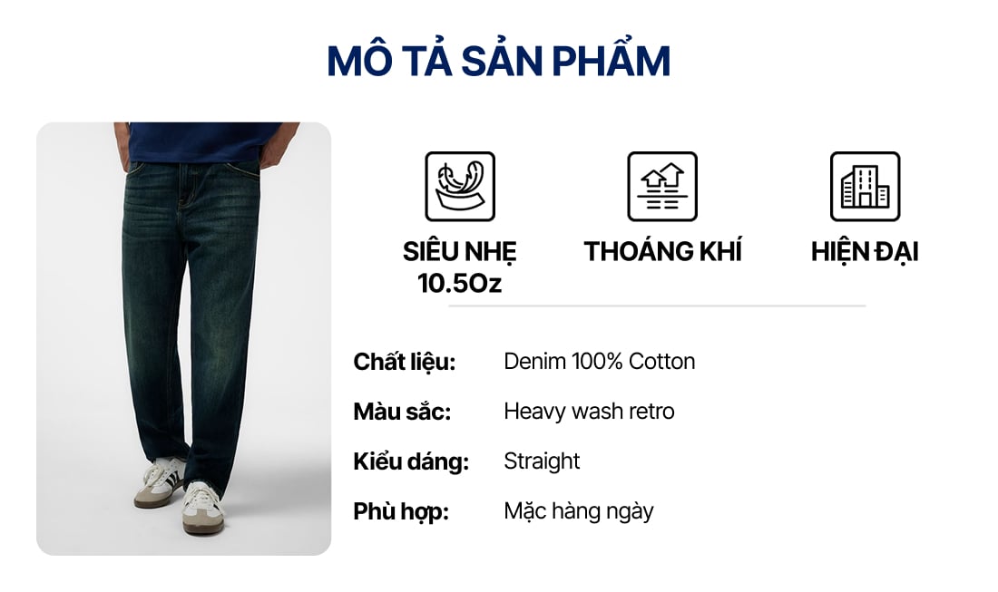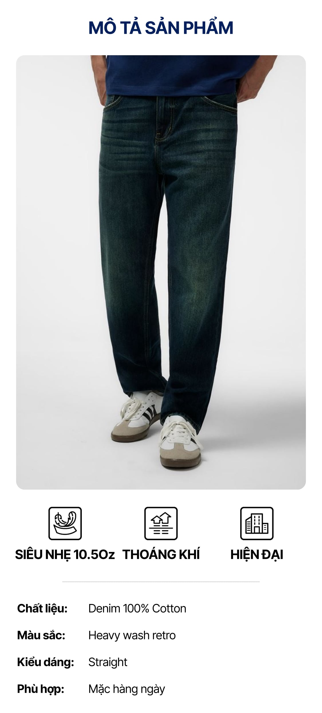 Quần Jean Nam Siêu Nhẹ Ống Suông Heavy Wash Retro ICON105 Form Straight ƯU ĐÃI ONLINE