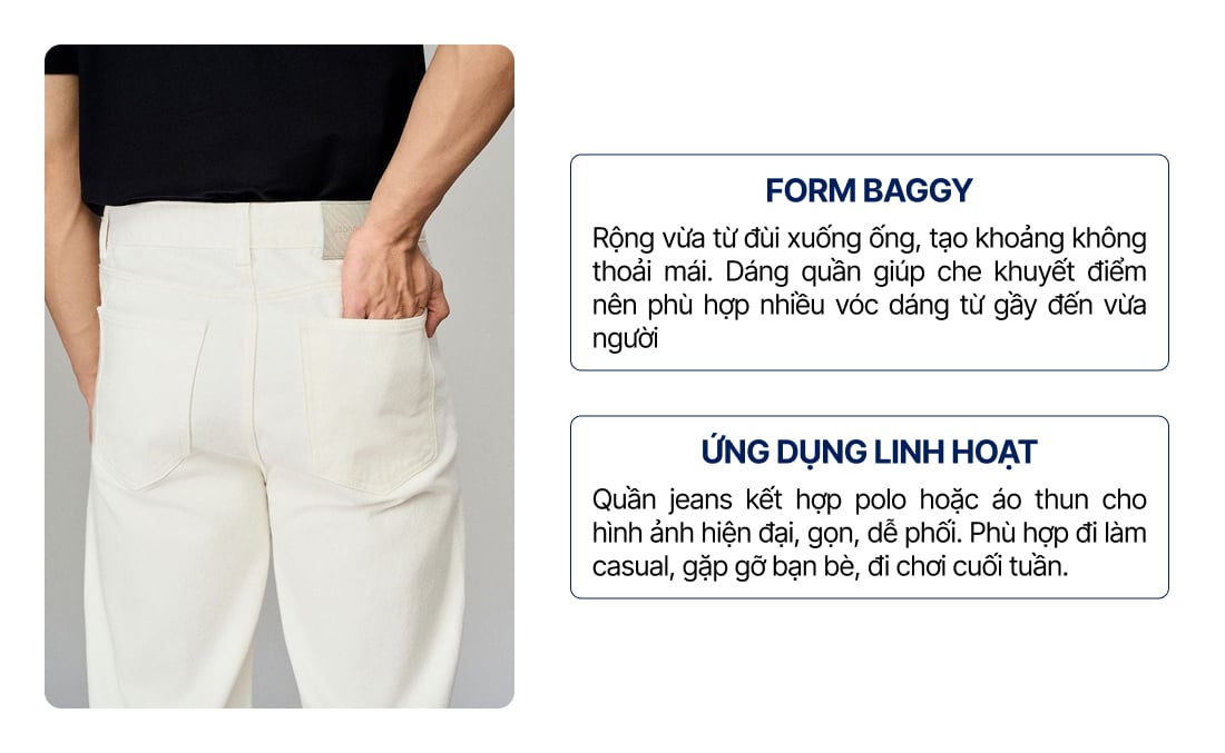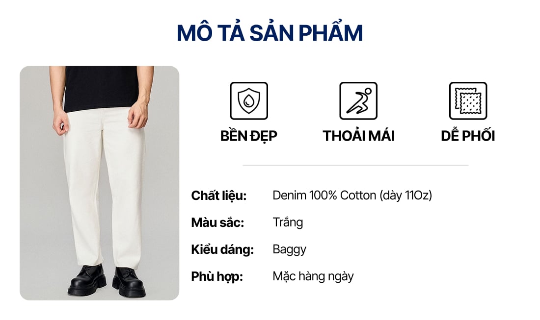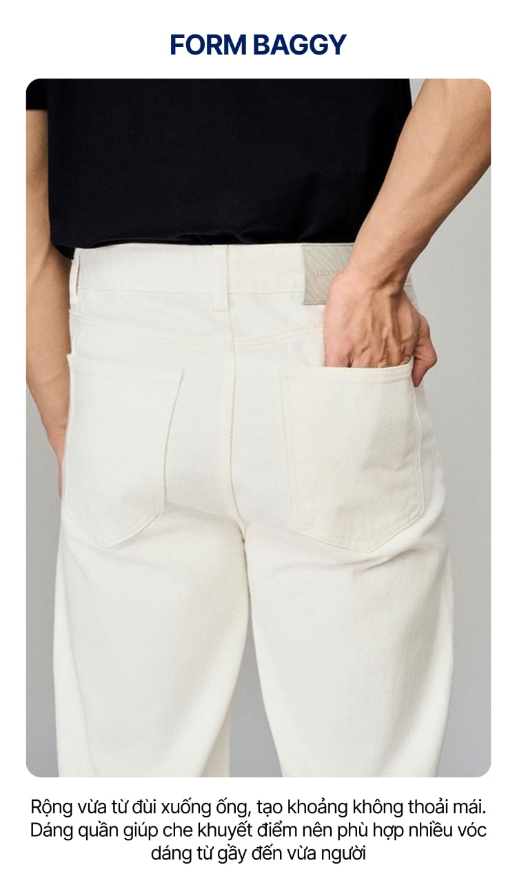 ICONDENIM® Quần Jean Nam Cotton Offwhite Form Baggy
