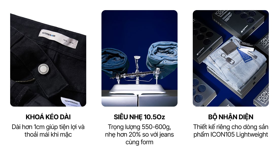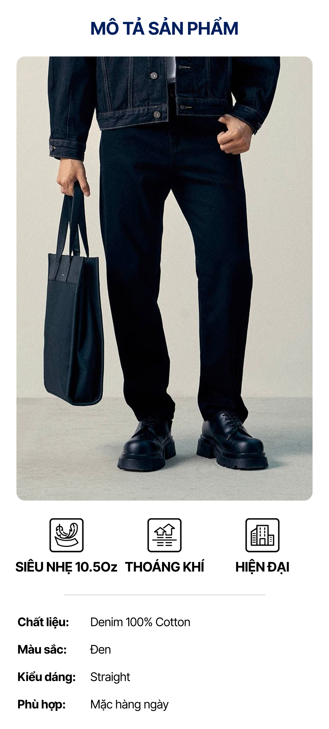 Quần Jean Nam Siêu Nhẹ Ống Suông Đen ICON105 Form Straight ƯU ĐÃI ONLINE