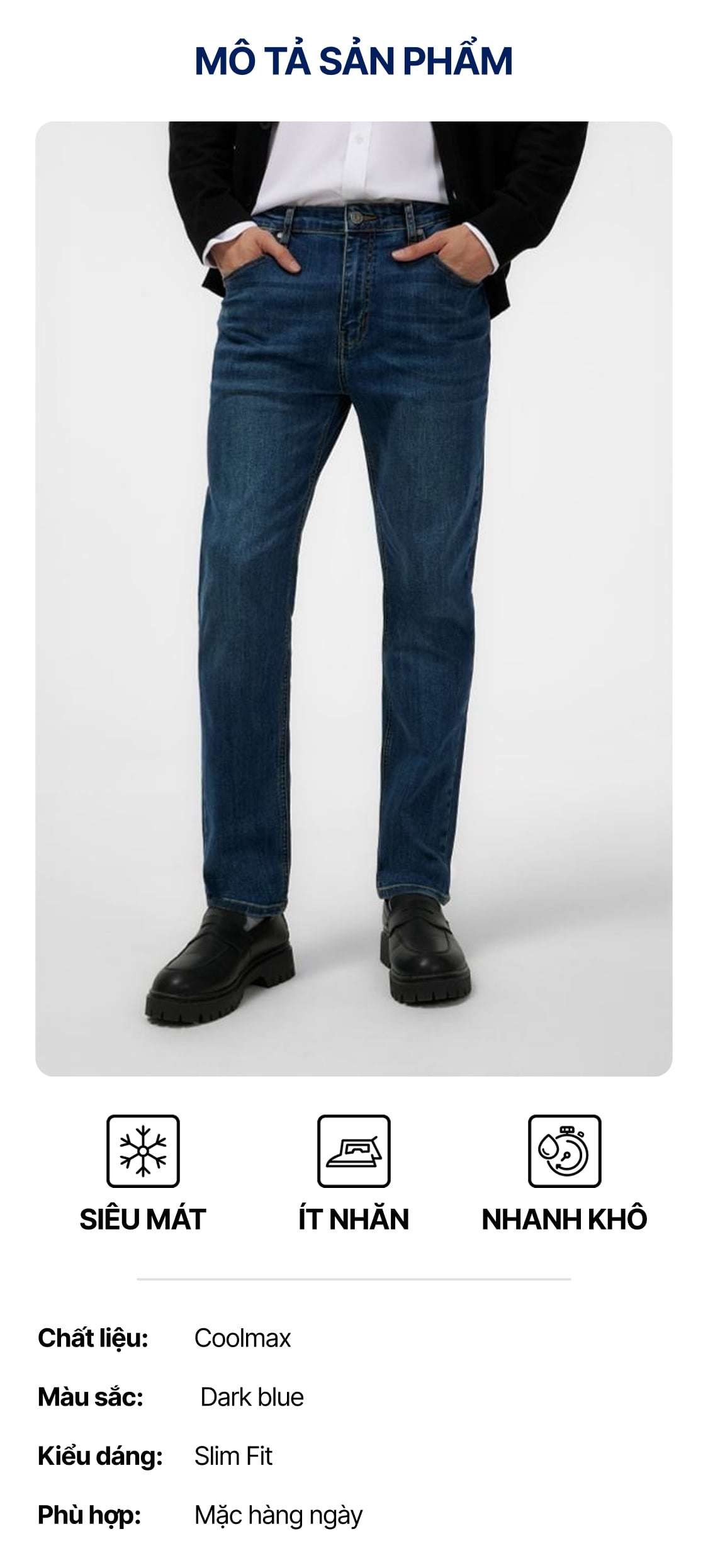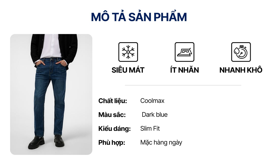 Quần Jean Nam Siêu Mát Ống Ôm ProCOOL Dark Blue Form Slim Fit