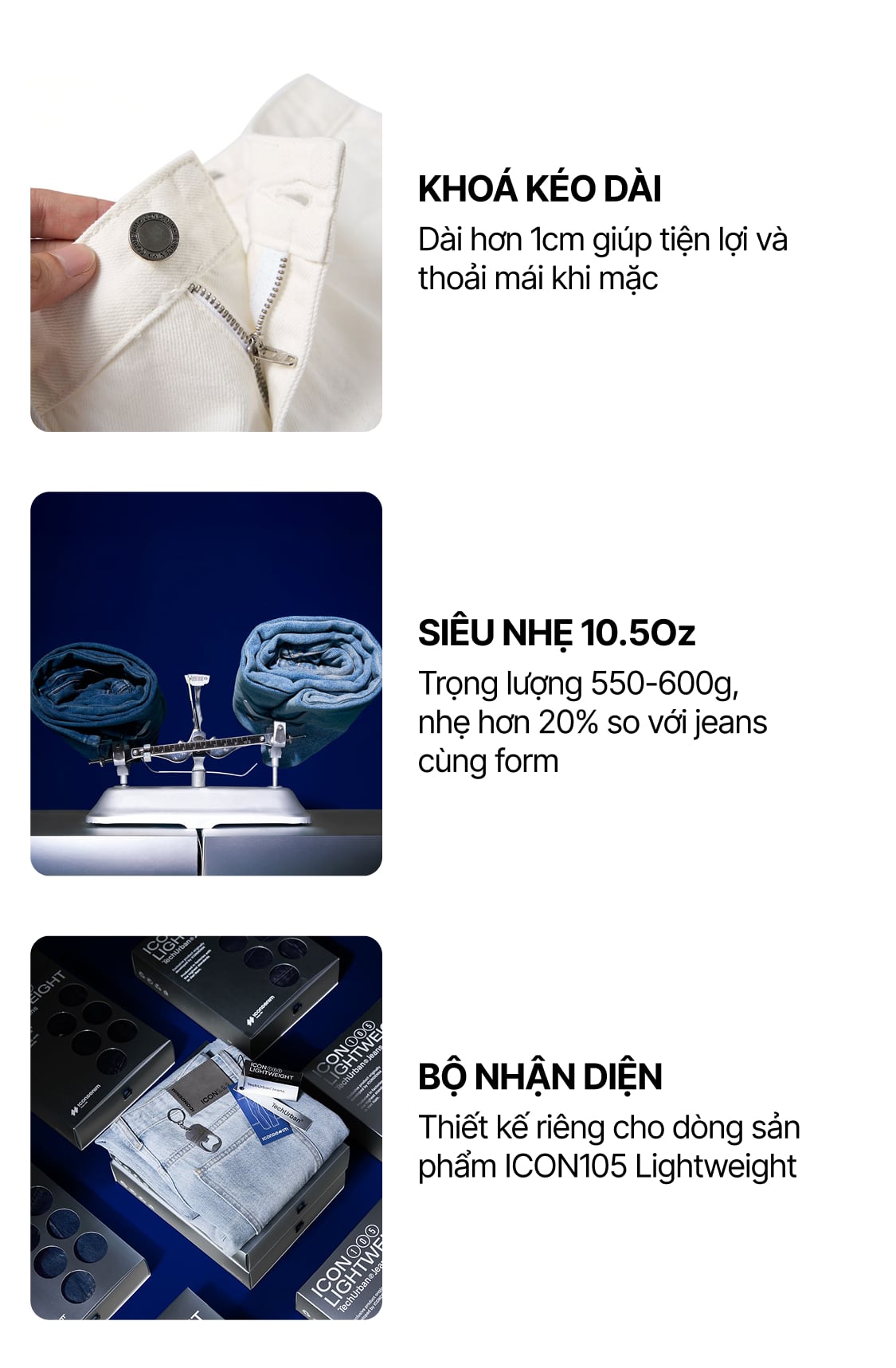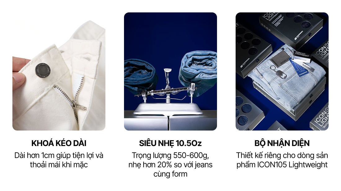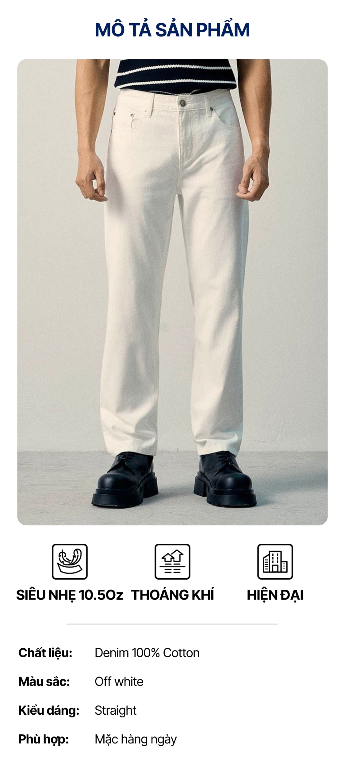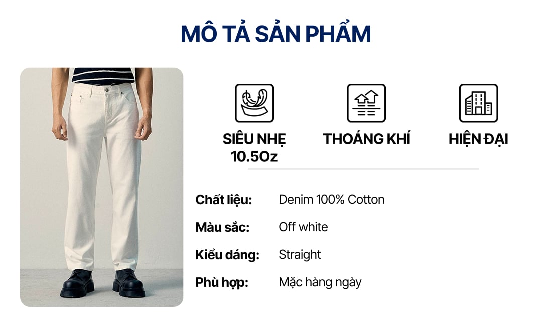 Quần Jean Nam Siêu Nhẹ Ống Suông ICON105 Lightweight Off White Form Straight ƯU ĐÃI ONLINE