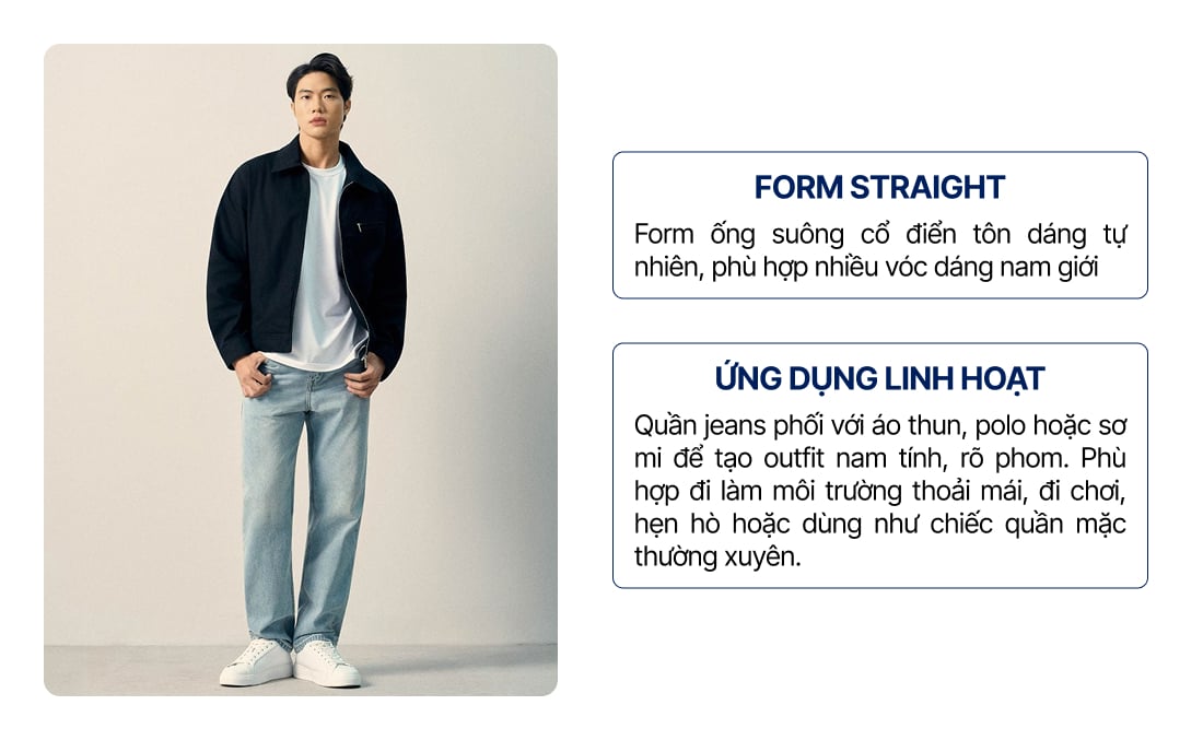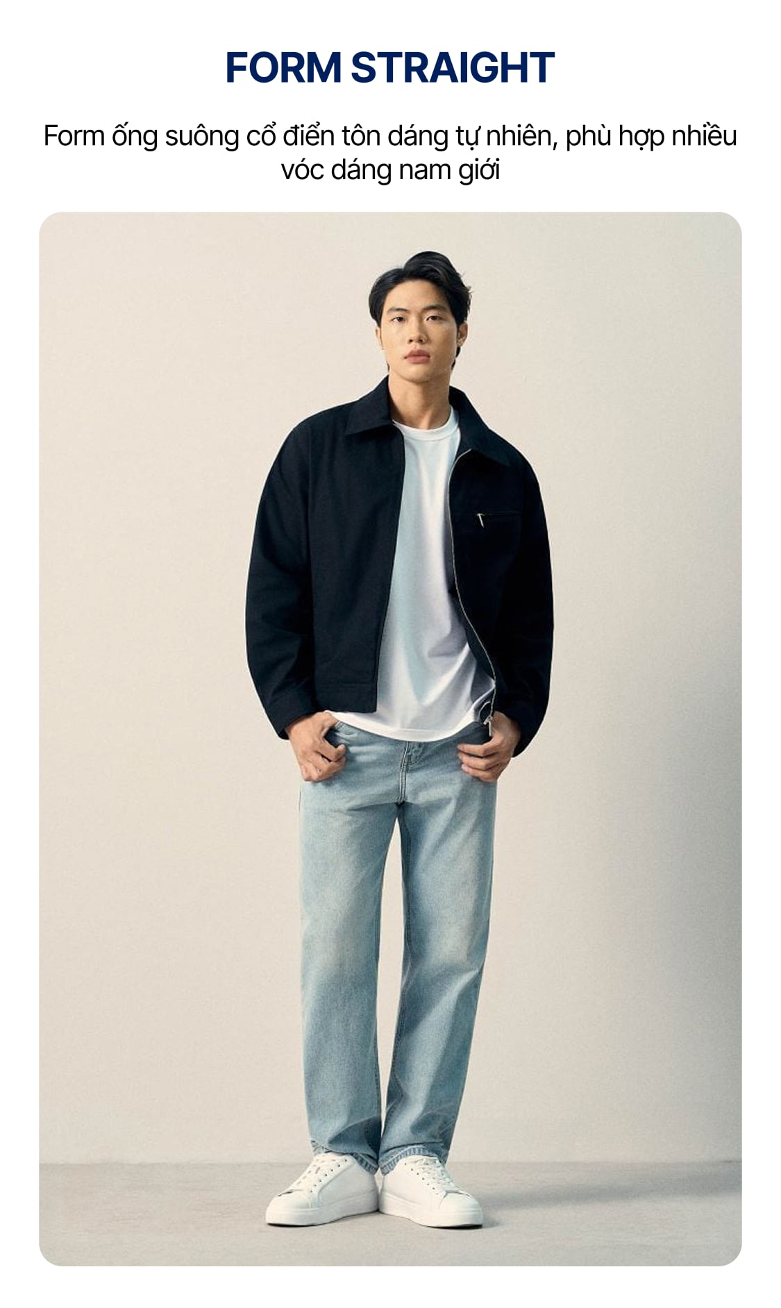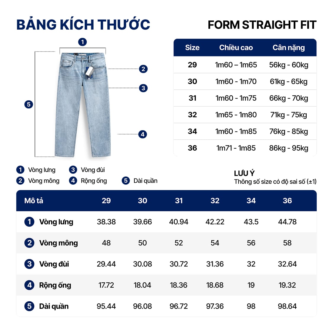 Quần Jean Nam Siêu Nhẹ Ống Suông Xanh Nhạt Trơn ICON105 Form Straight ƯU ĐÃI ONLINE