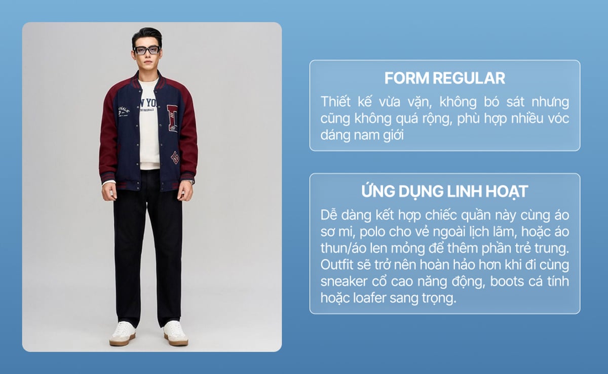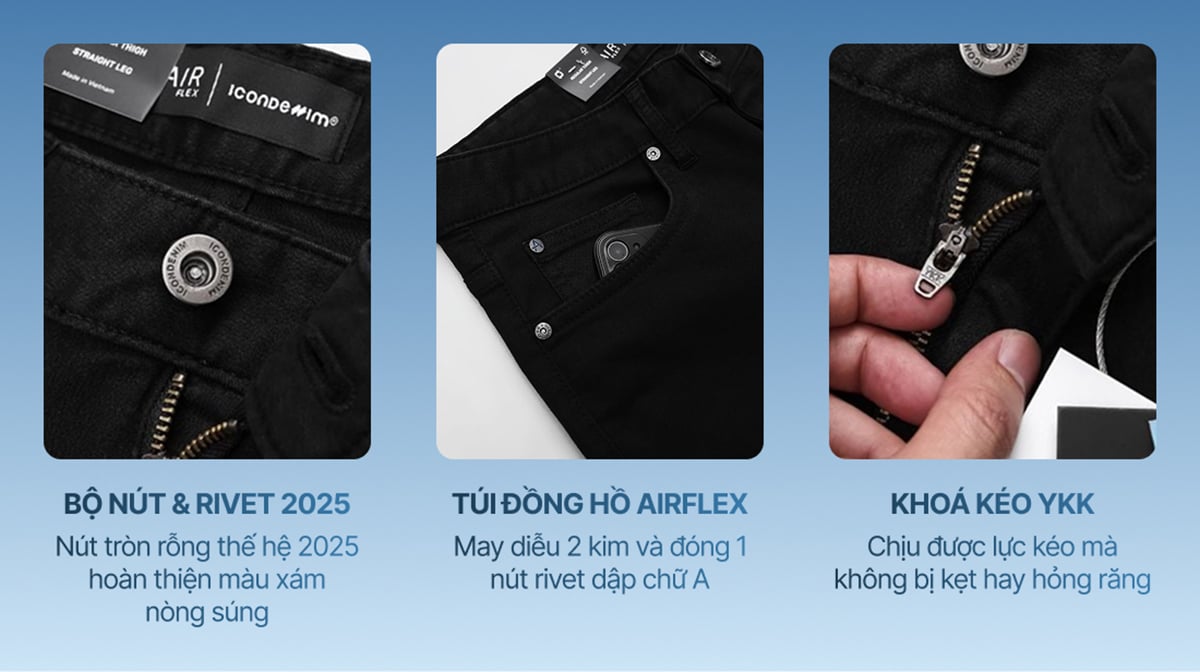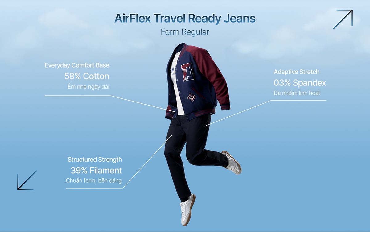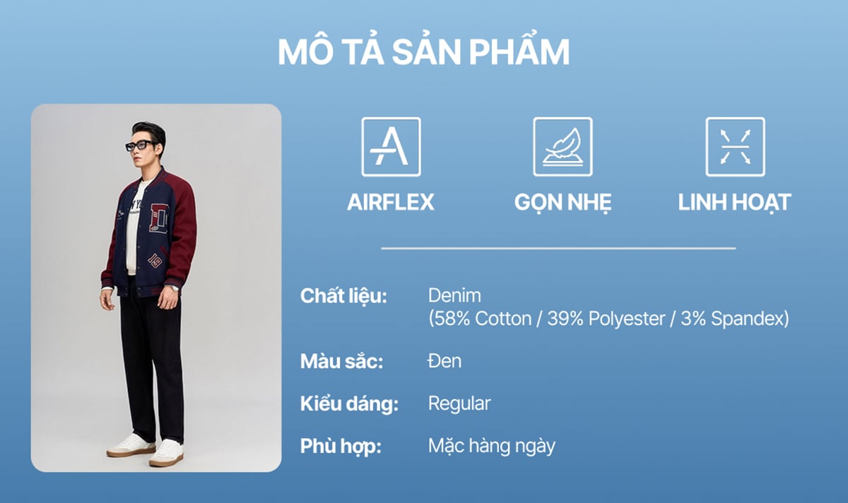 • Chất liệu: Denim AirFlex 7–7.5oz