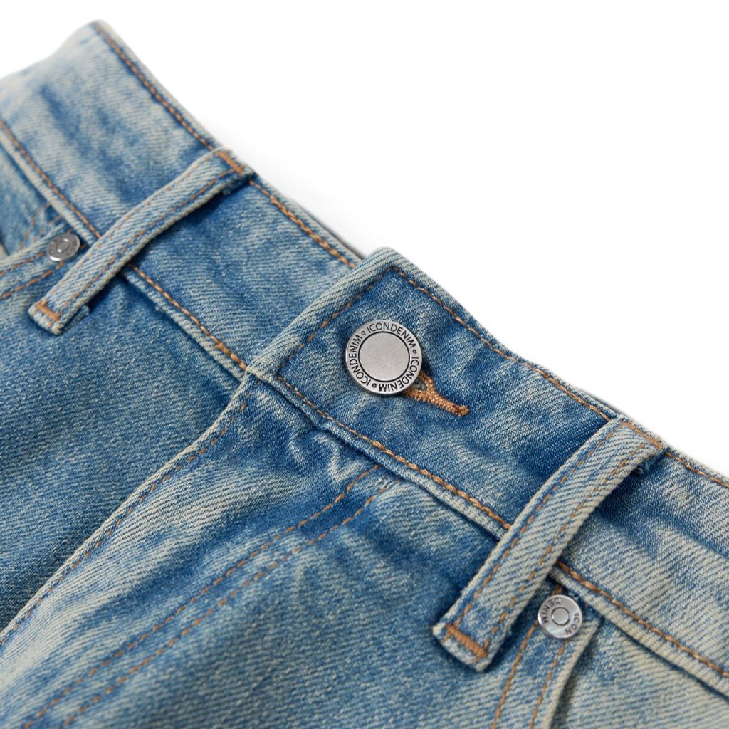 Đường may chắc chắn, khóa kéo kim loại bền bỉ, khuy in logo ICONDENIM hoàn thiện tinh tế