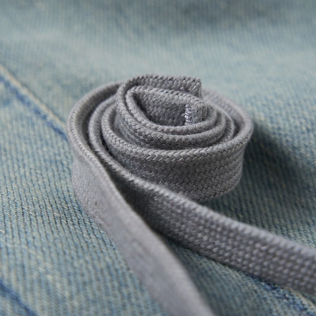 Chất vải denim dày dặn với kết cấu mềm mại, bề mặt vải thoáng khí và giữ phom tốt vừa tạo cảm giác dễ chịu khi mặc, vừa đủ độ đứng để tạo form đẹp và dễ phối. Thoải mái diện trong mọi điều kiện thời tiết.