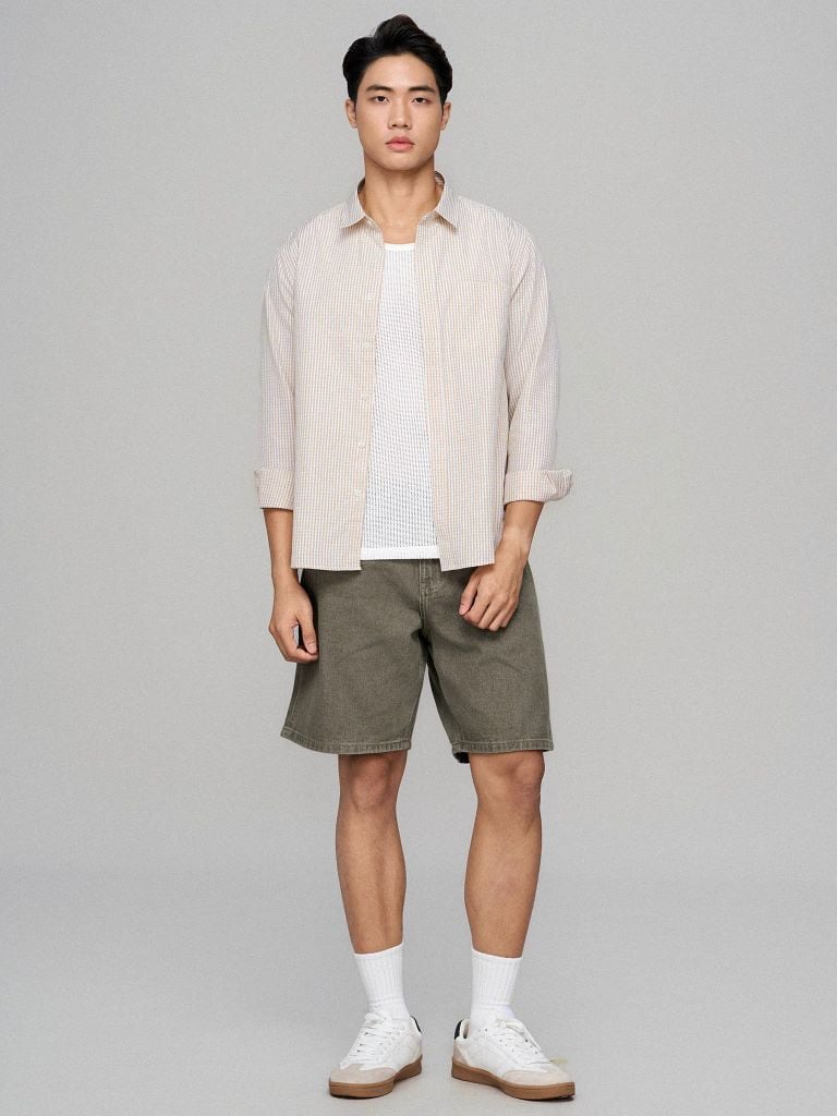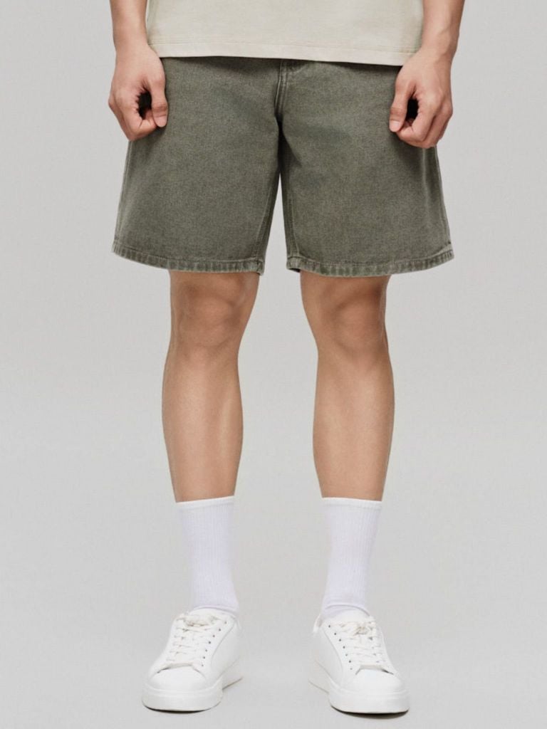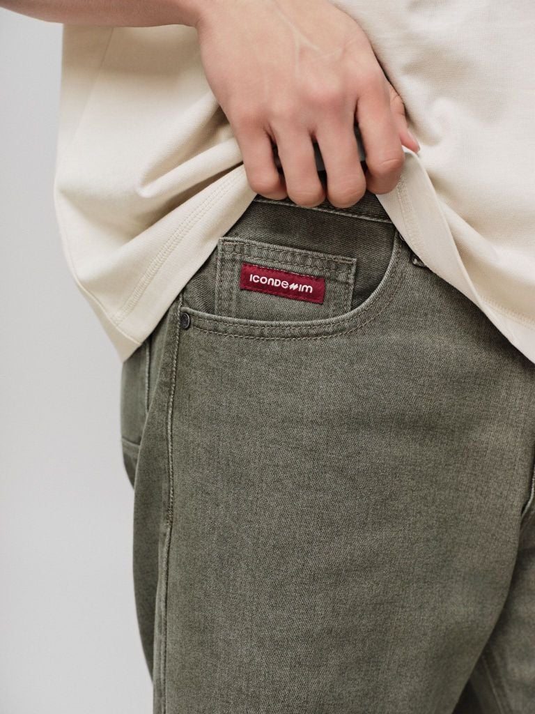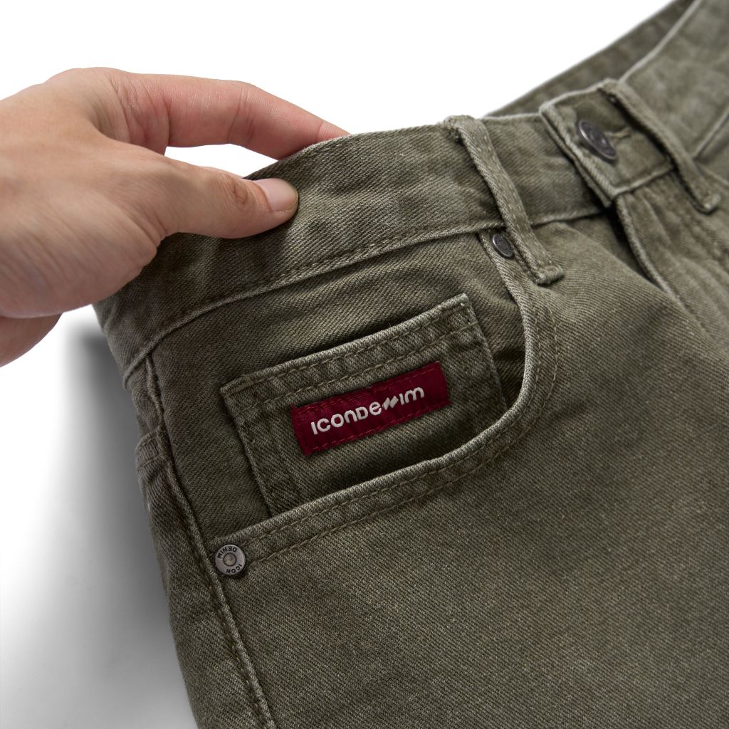 Chất vải denim xử lý tint wash tạo hiệu ứng loang nhẹ tự nhiên, gam màu rêu trầm gợi cảm giác bụi bặm, cool ngầu.
