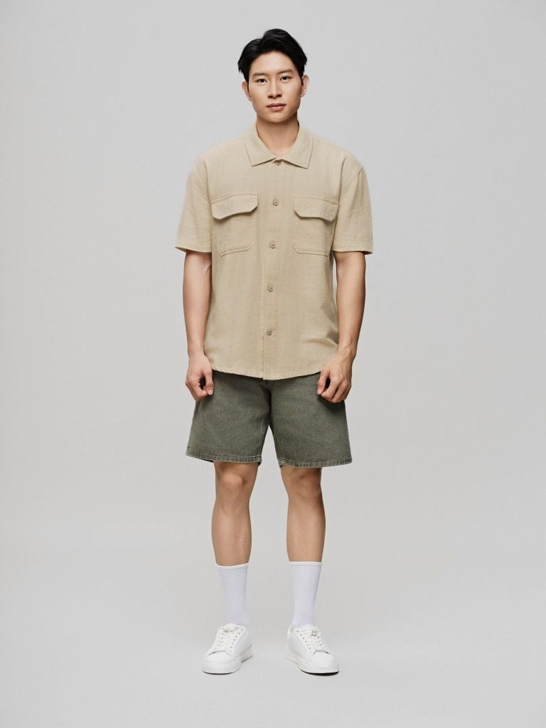 Denim trọng lượng trung bình, xử lý wash loang bằng kỹ thuật tint giúp tạo nên màu rêu độc bản, không trùng lặp. Chất vải giữ dáng tốt, không bai dão sau nhiều lần giặt.
