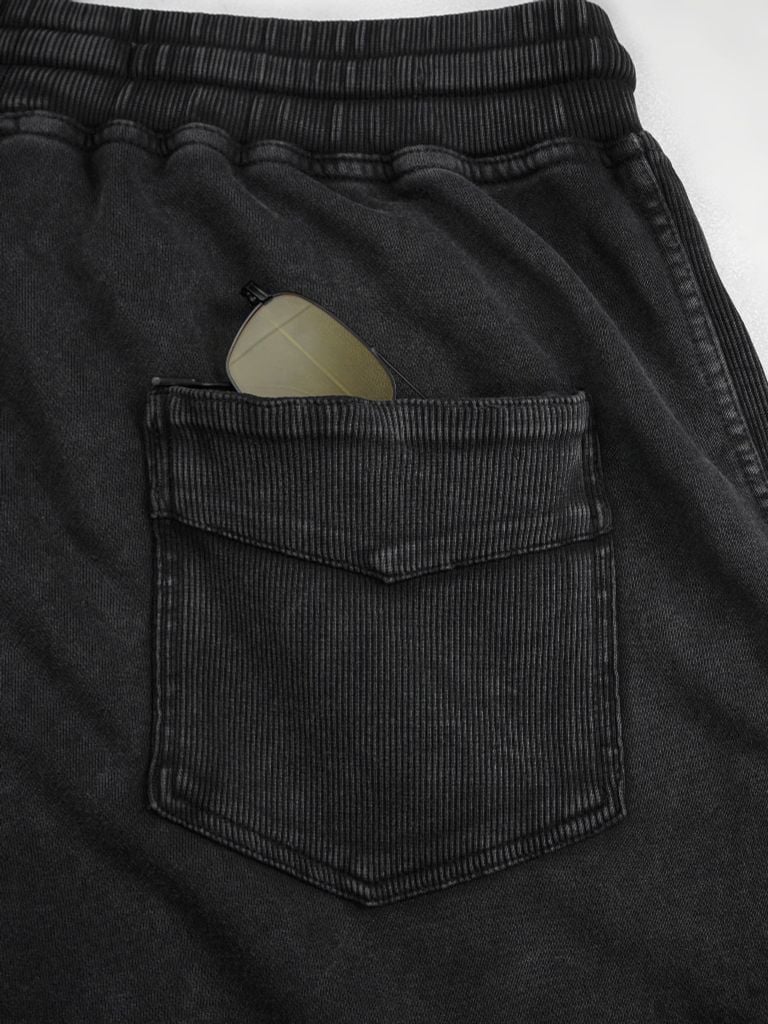 Lưng bo rib may 2 đường chỉ kết hợp dây rút bản dẹp xương cá, giúp quần dễ điều chỉnh và mặc chắc chắn hơn. Hai túi xéo hai bên hông tăng tính tiện dụng, đi cùng chi tiết phối rib và thêu nhấn ở thân trước. Mặt sau có túi đắp phối màu, tạo điểm nhấn cho tổng thể.