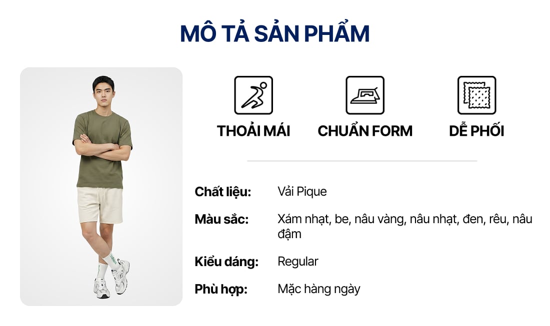 Quần Short Pique Nam Form Regular ƯU ĐÃI ONLINE