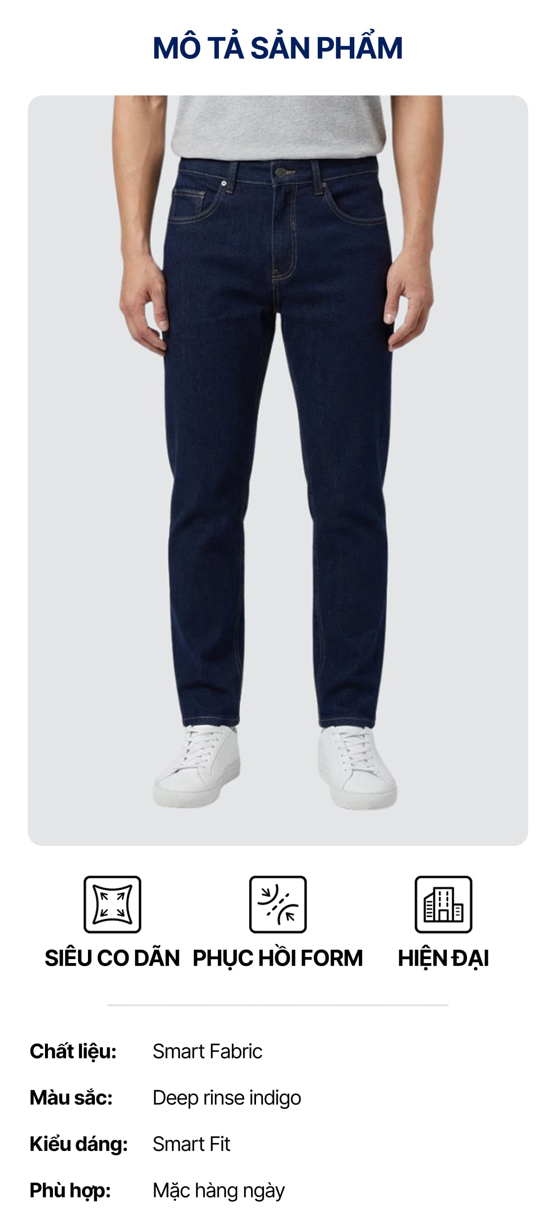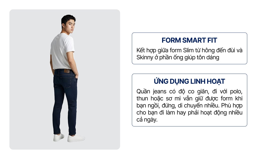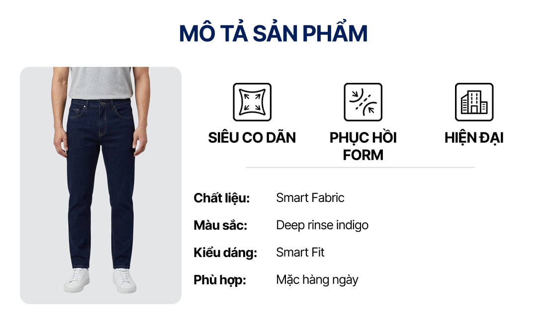 Quần Smart Jean Nam Siêu Co Dãn Deep Rinse Indigo Form Smart Fit ƯU ĐÃI ONLINE