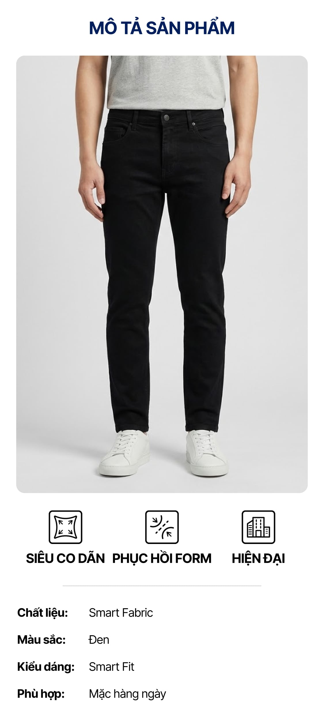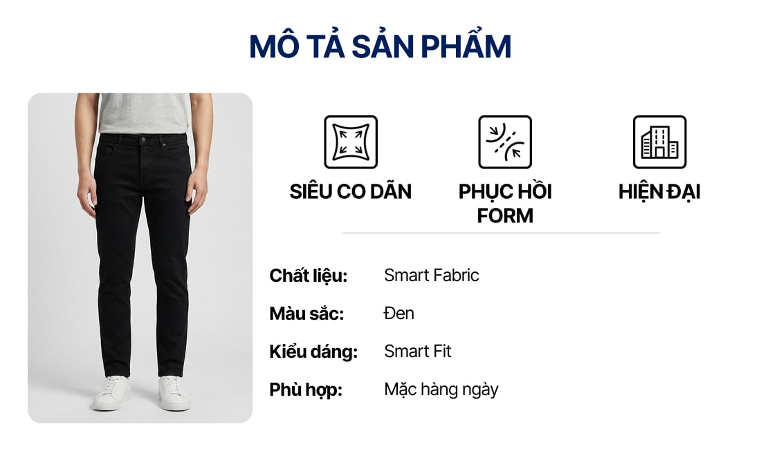 Quần Smart Jean Nam Siêu Co Dãn Đen Trơn Form Smart Fit