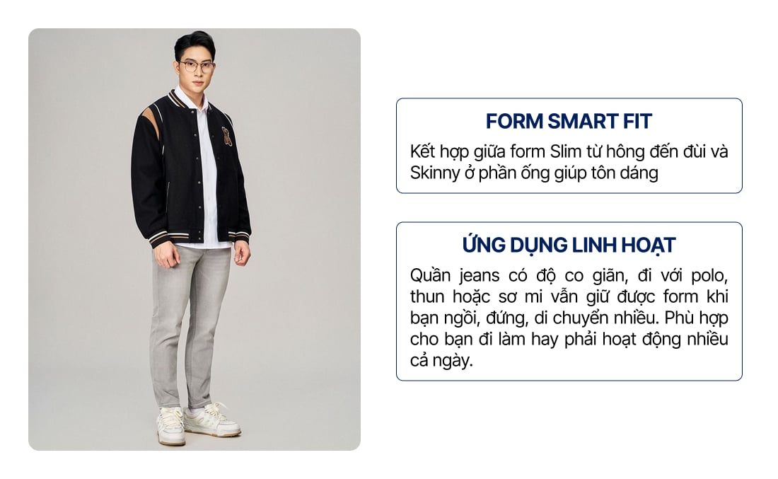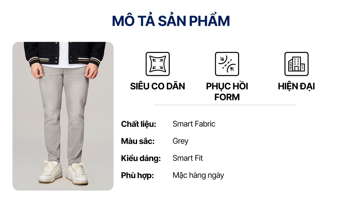 Quần Smart Jeans Nam Siêu Co Dãn Grey Form Smart Fit ƯU ĐÃI ONLINE