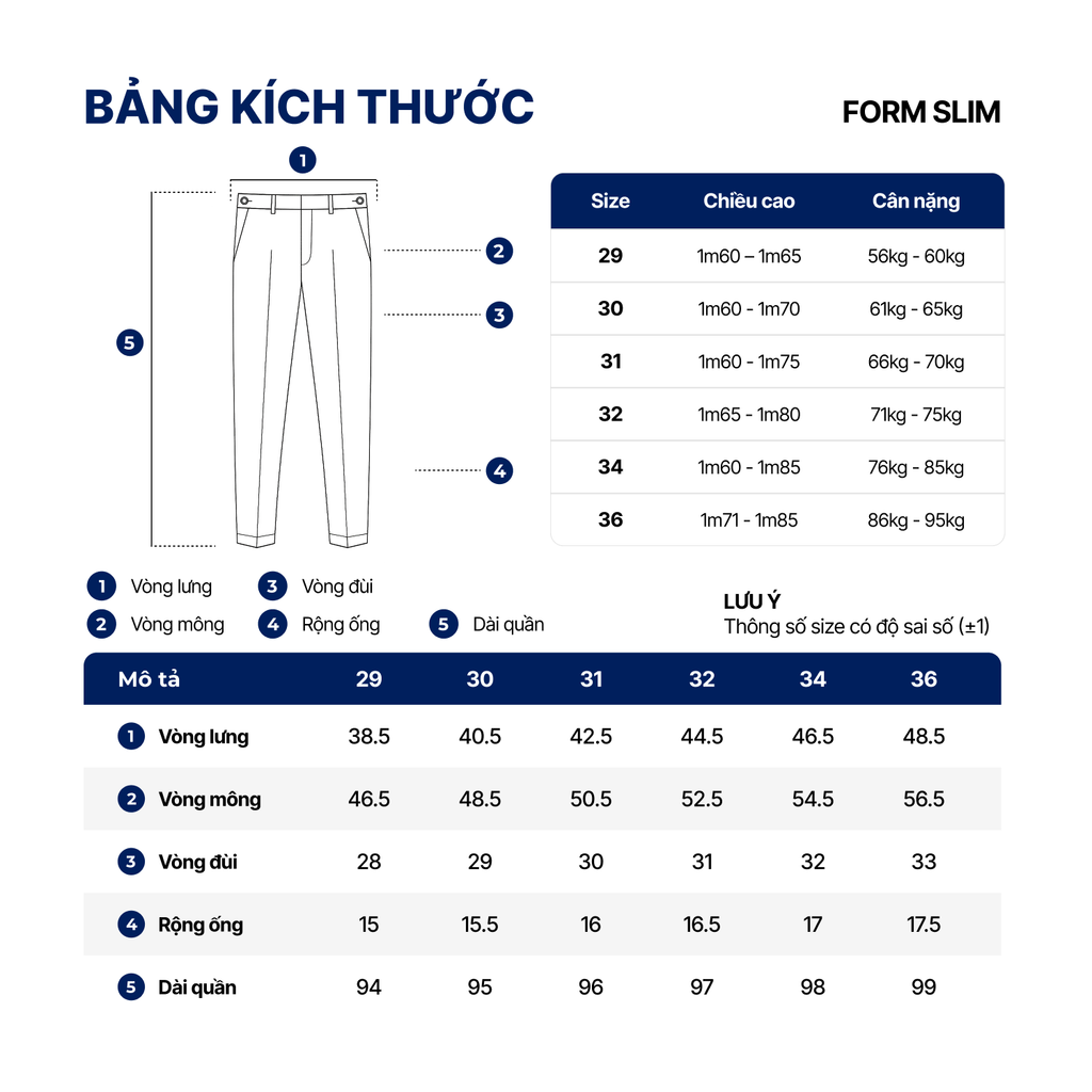 Thiết kế slim-fit giúp quần ôm vừa vặn, tôn lên dáng người mặc, tạo nên phong cách gọn gàng và thanh lịch.
