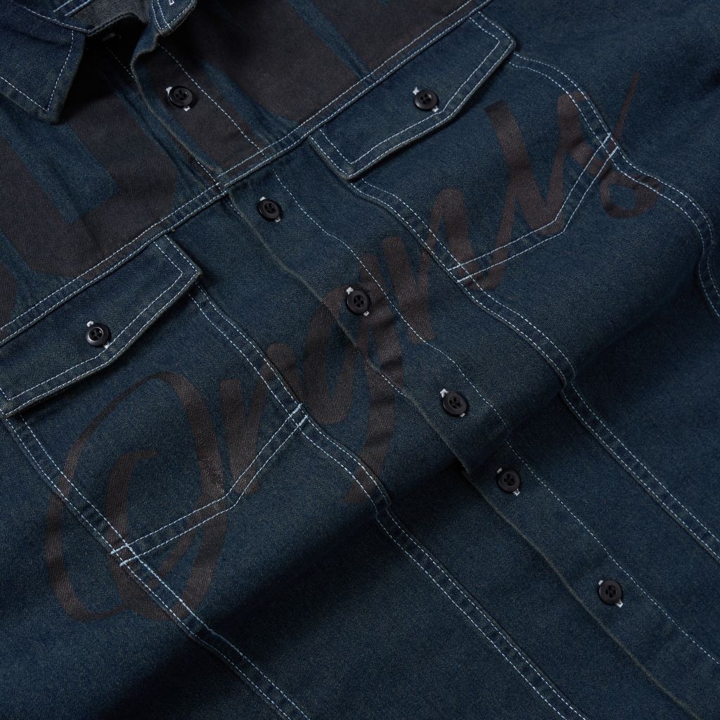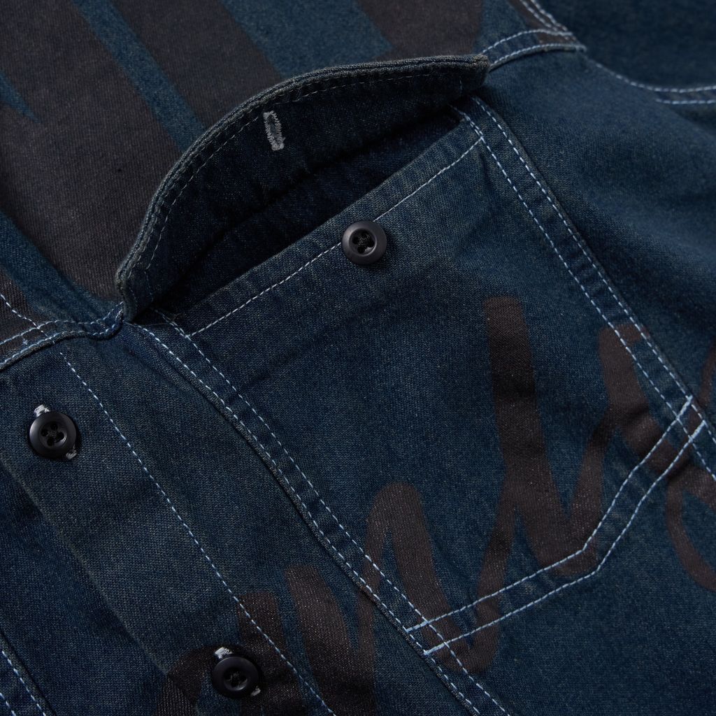 Set đồ dù có màu xanh denim chủ đạo nhưng không đơn điệu nhờ điểm nhấn từ chi tiết thêu chỉ nổi cùng dòng typo ẩn hiện, làm nên phong cách cá nhân.