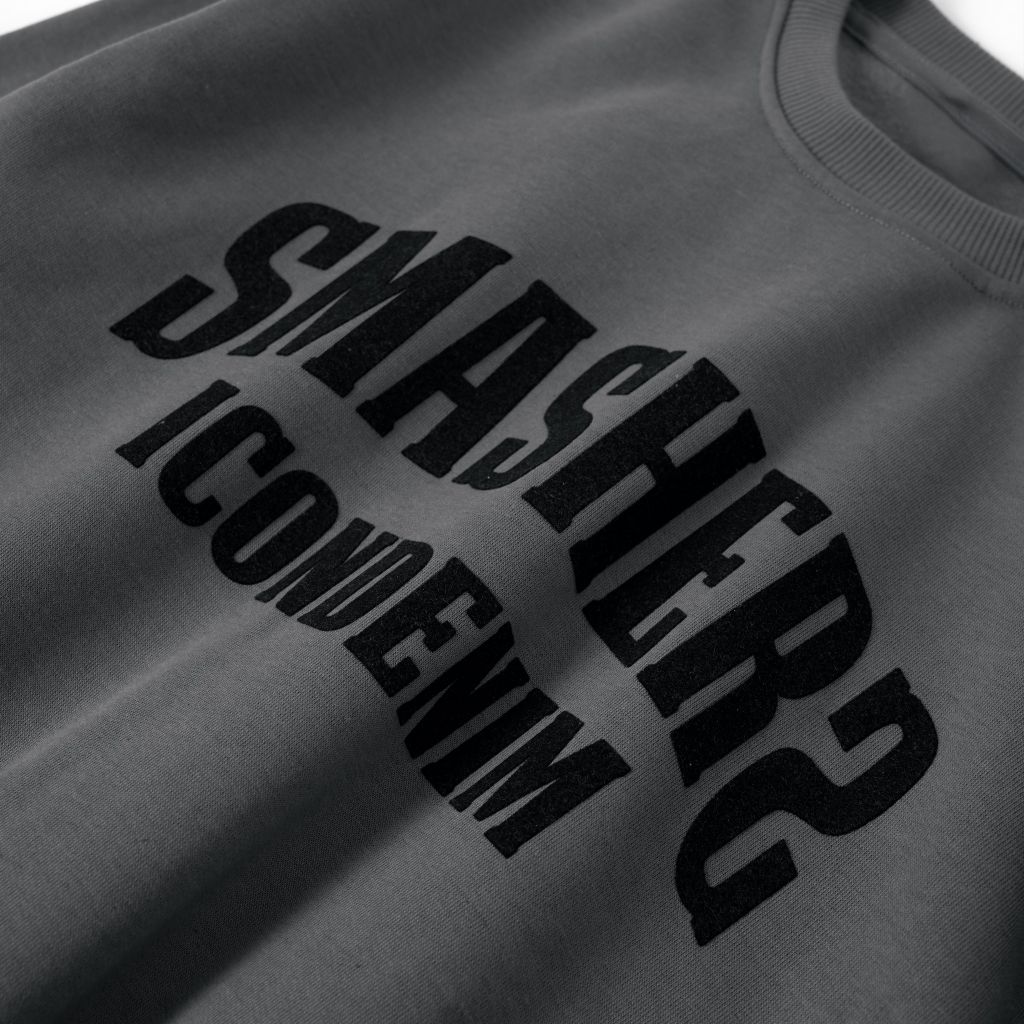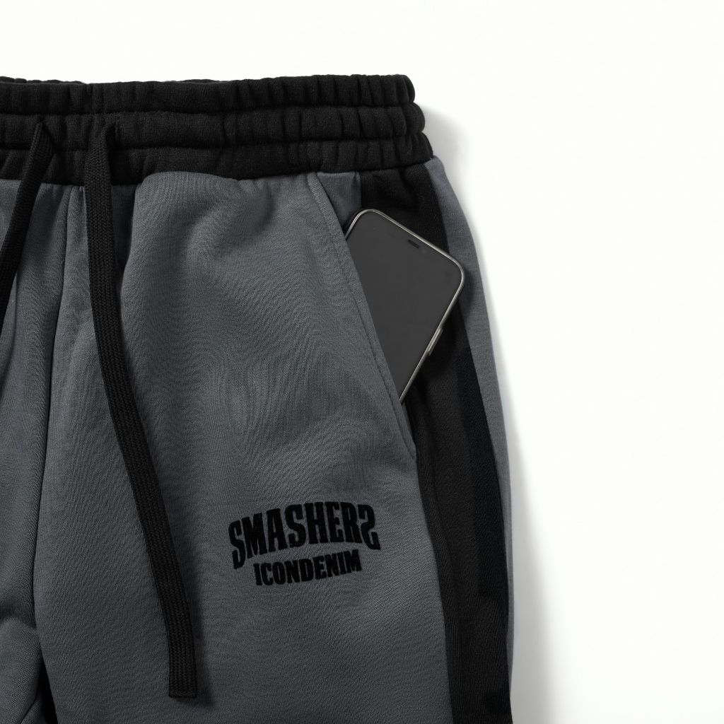 Set đồ tạo điểm nhấn với họa tiết Typo Smashers và in nhung, kết hợp với các đường bo thun ở cổ áo và cổ chân mang đến một thiết kế cuốn hút.