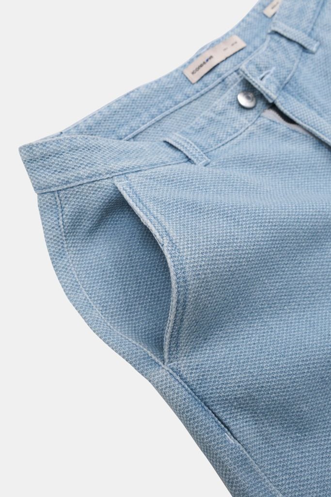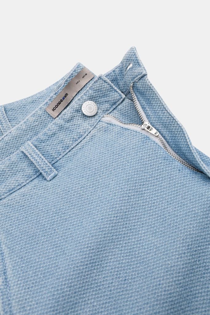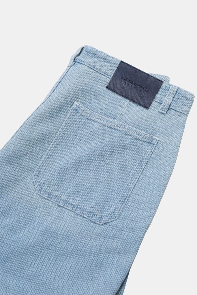 Chất vải jacquard jean xử lý wash nhẹ tạo bề mặt mềm, thoáng và không quá cứng như denim truyền thống. Khi mặc cho cảm giác nhẹ người, phù hợp mặc hàng ngày.