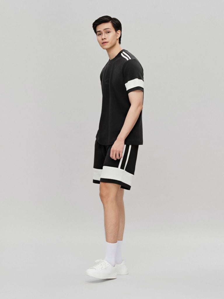 Quần short đi kèm có túi hai bên, lưng thun co giãn và chi tiết túi đáp sau may tỉ mỉ. Có thể mặc riêng hoặc kết hợp cả set. Dáng regular không quá ôm, không quá rộng, giúp lên dáng tự nhiên và đảm bảo sự thoải mái tối đa trong mọi chuyển động hàng ngày.