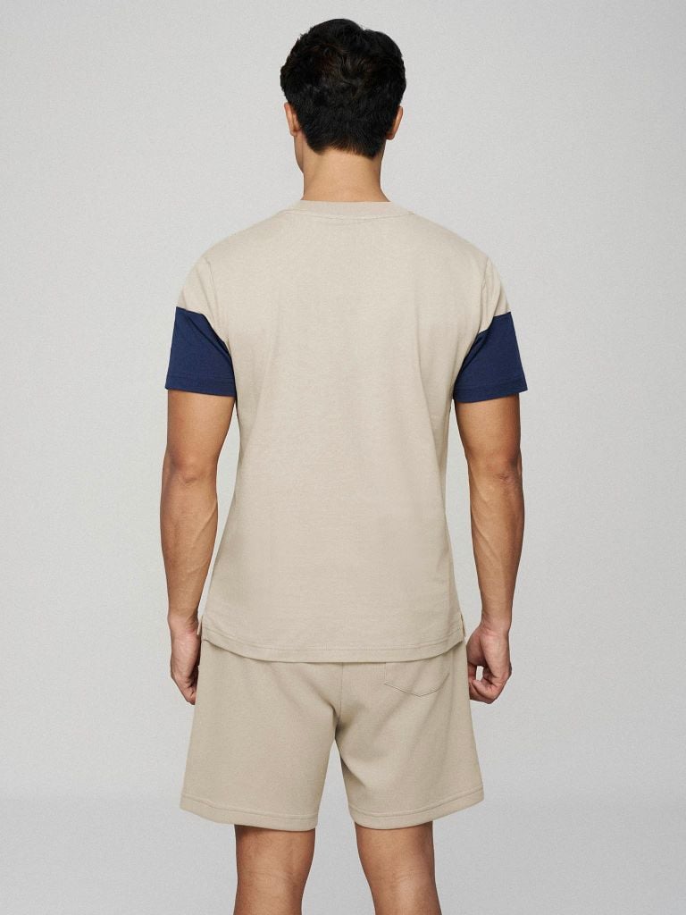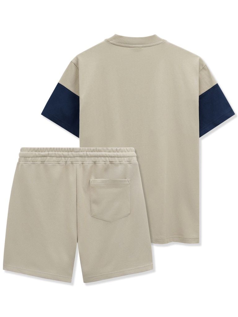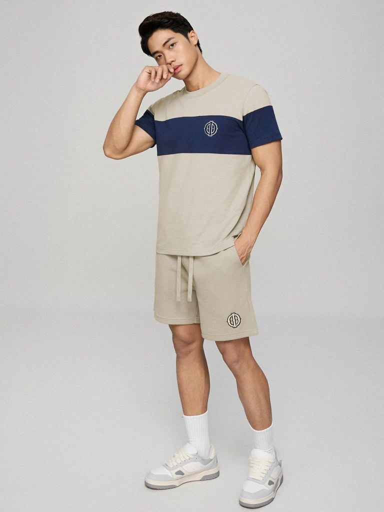 ► FORM REGULAR – GỌN GÀNG & DỄ MẶCÁo thun cổ tròn phối màu be navy trẻ trung, giữ form vừa vặn cho nhiều vóc dáng. Quần short lưng thun rút dây chắc chắn, đường may 2 kim tinh gọn tạo sự cân đối.