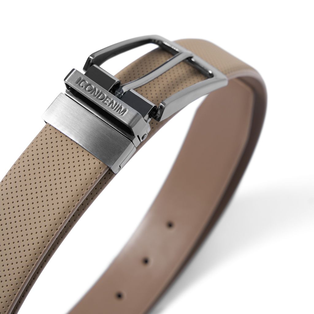 Đầu khóa kim loại được phủ màu đen hoặc xám nòng súng, có thể xoay 3600 giúp linh hoạt điều chỉnh góc đeo. Bề mặt dây được xử lý với họa tiết đục lỗ nhỏ tỉ mỉ cùng khoen kim loại đi kèm được khắc laser logo ICONDENIM giúp tạo điểm nhấn hiện đại và phong cách.