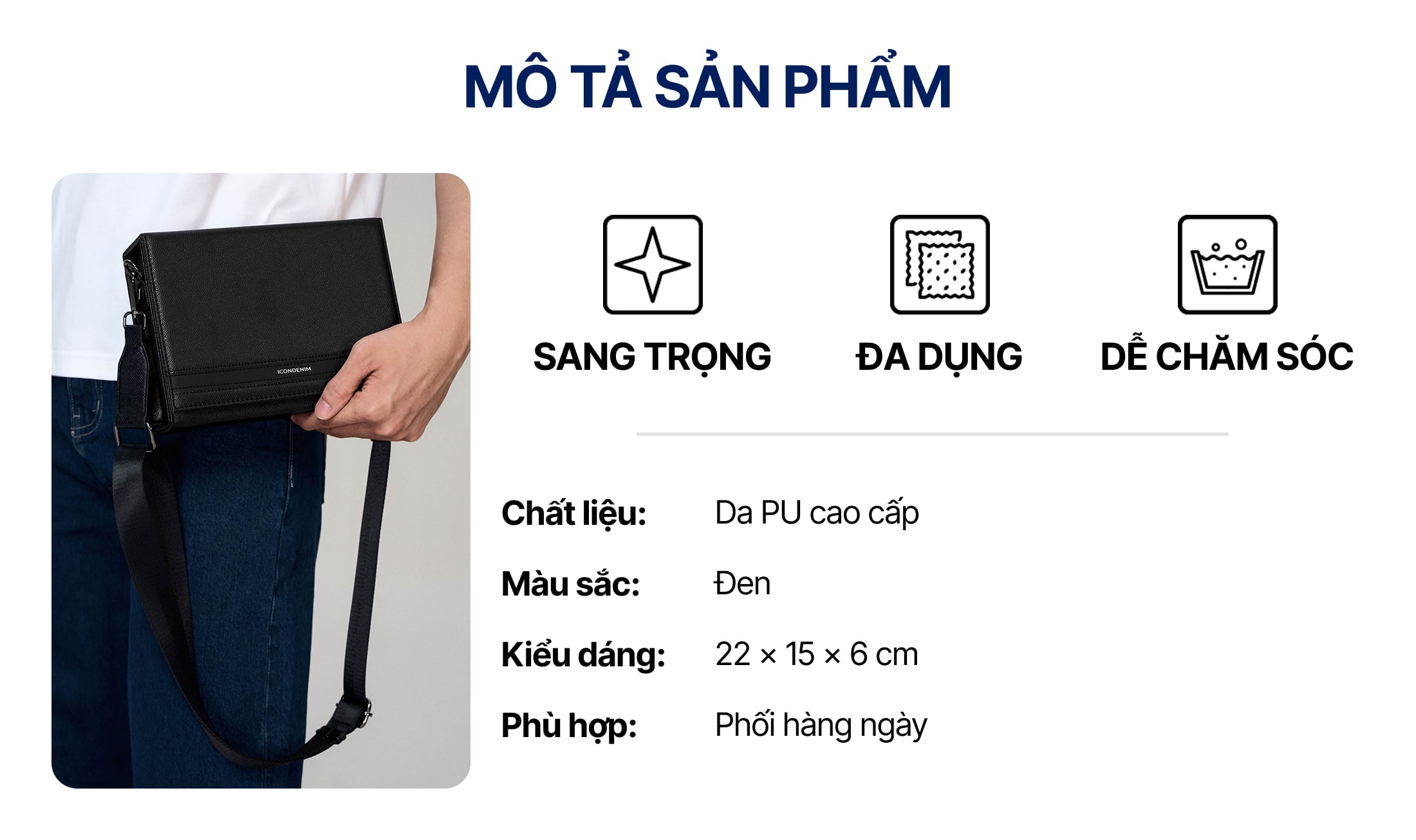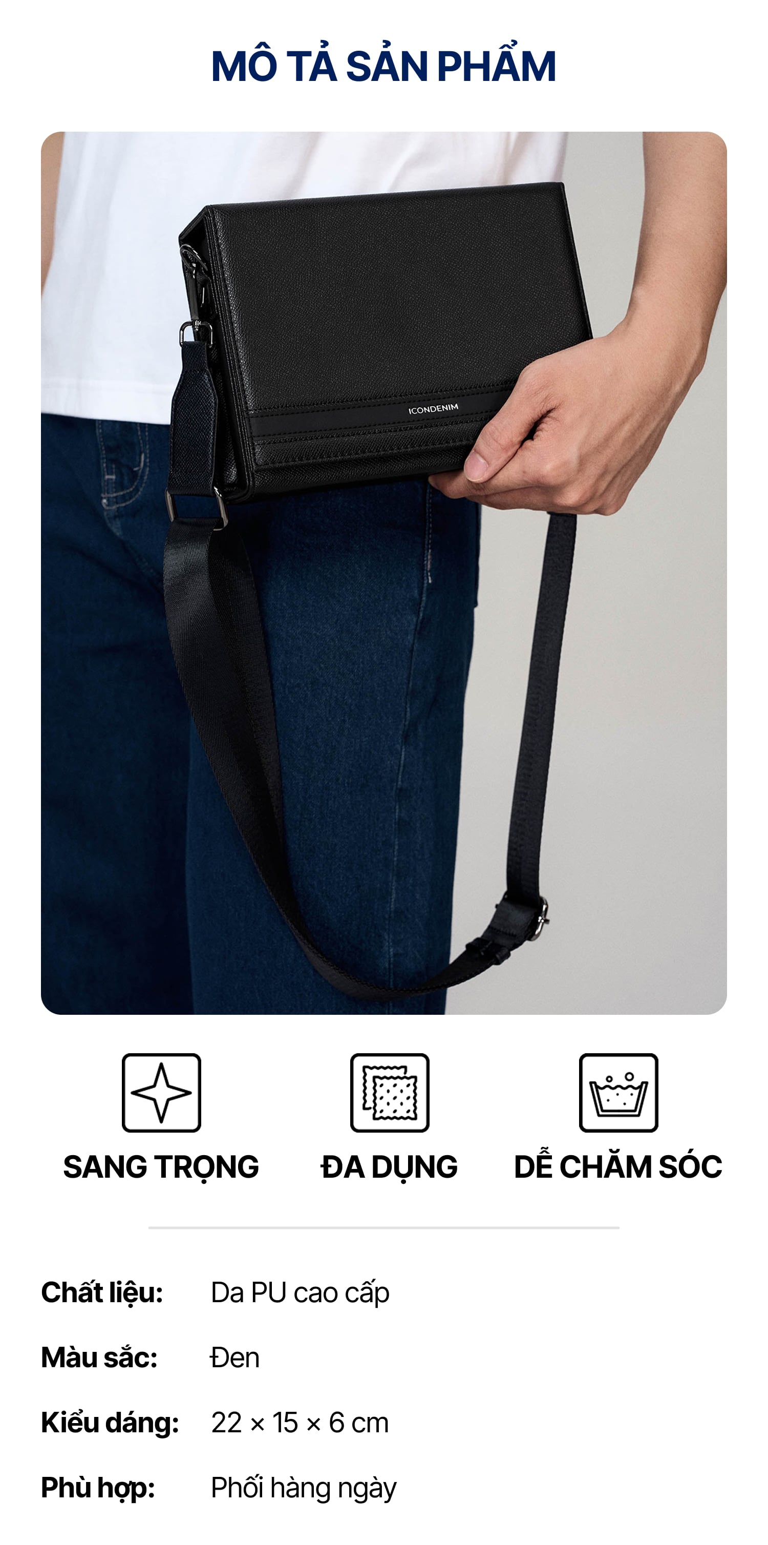 ICONDENIM® Túi Đeo Chéo Nam Da Black Reign