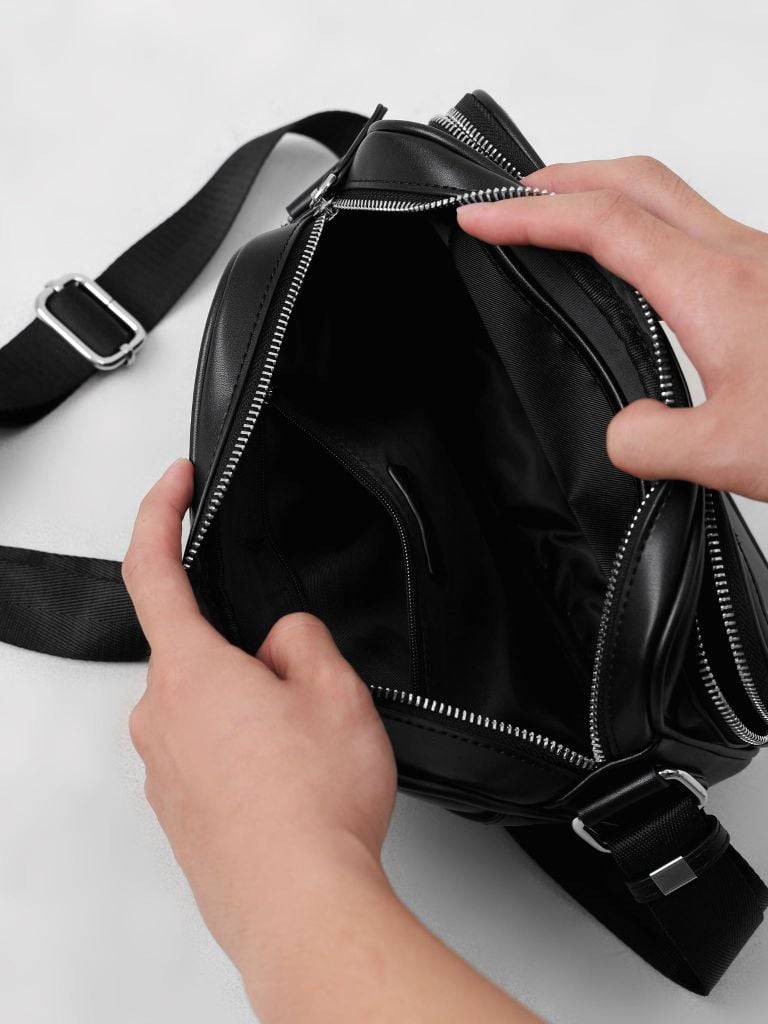 Phom túi chữ nhật gọn, tỷ lệ cân đối, phù hợp đeo chéo trước ngực hoặc sau lưng. Thiết kế hướng đến tính ứng dụng cao, đủ không gian chứa các vật dụng cá nhân cơ bản như điện thoại, ví, tai nghe và phụ kiện nhỏ. Dây đeo bản vừa, dễ điều chỉnh độ dài, mang lại cảm giác thoải mái khi sử dụng trong thời gian dài.