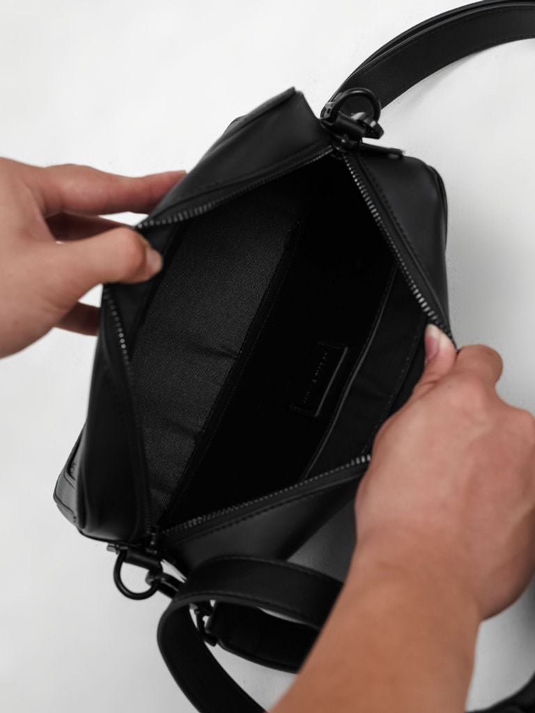 Form chữ nhật kích thước 15 × 23 × 6.5 cm, tối ưu cho di chuyển hằng ngày. Dây đeo bản vừa may 2 bên chắc chắn, có tăng đơ điều chỉnh theo vóc dáng. Bên trong chia ngăn hợp lý, để ví – điện thoại – chìa khóa và phụ kiện nhỏ gọn gàng.